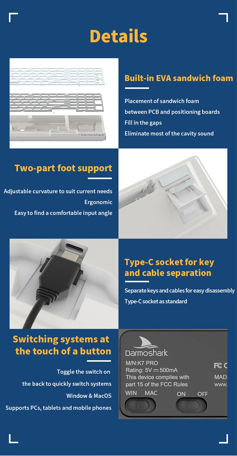 Wired:etachable Type-c USB